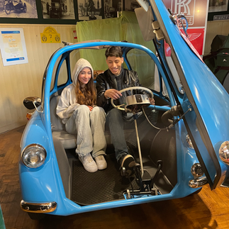 Um die Exkursion ins Siegfried Marcus Automobilmuseum zu starten, musste nur eine Straße überquert werden. Das Museum liegt quasi direkt vor der Tür unserer Schule und bietet so einiges an Information. Angefangen mit dem Namensgeber des Museums, dem jüdischen Mechaniker und Erfinder Siegfried Markus aus Wien, der heute als Pionier und Erfinder des Automobils gilt, bis hin zu einer detaillierten Geschichte des Automobils bis zu seiner heutigen Form wurden die Exkursionteilnehmer*innen mit reichlich Hintergrundwissen versorgt. Fotografieren und Probesitzen, beispielsweise im originalen Night Rider Filmauto kam natürlich auch nicht zu kurz, sodass wirklich jeder den 1,5-stündigen Besuch voll genießen konnte.